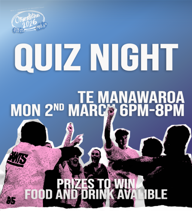 This year, the WSU is launching “Half Baked”, our pop-up shop run by our very own head of catering, Suneha. What better way to say “The WSU is running a half bakery, sandwich, soup and other student-friendly priced meals multiple times a week in the SUB (keep following us at @Waikatostudents for details),” than to let some idiots run around eating our own fresh pies while drinking things we aren’t explicitly hoping will make them vomit. That’s right it’s a MEAT PIE MILE!